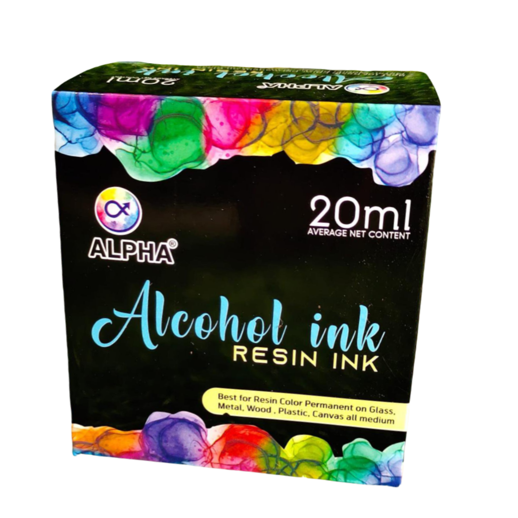 Alpha Alcohol Ink, which are concentrated, alcohol-based inks used for art projects, particularly with epoxy resin. The set includes both standard and metallic shades. The metallic shades are Silver, Gold, Rose Gold, Bronze, Copper, and Pearl White. Alcohol inks are fast-drying and can be used on various hard, non-porous surfaces like glass, metal, and plastic….