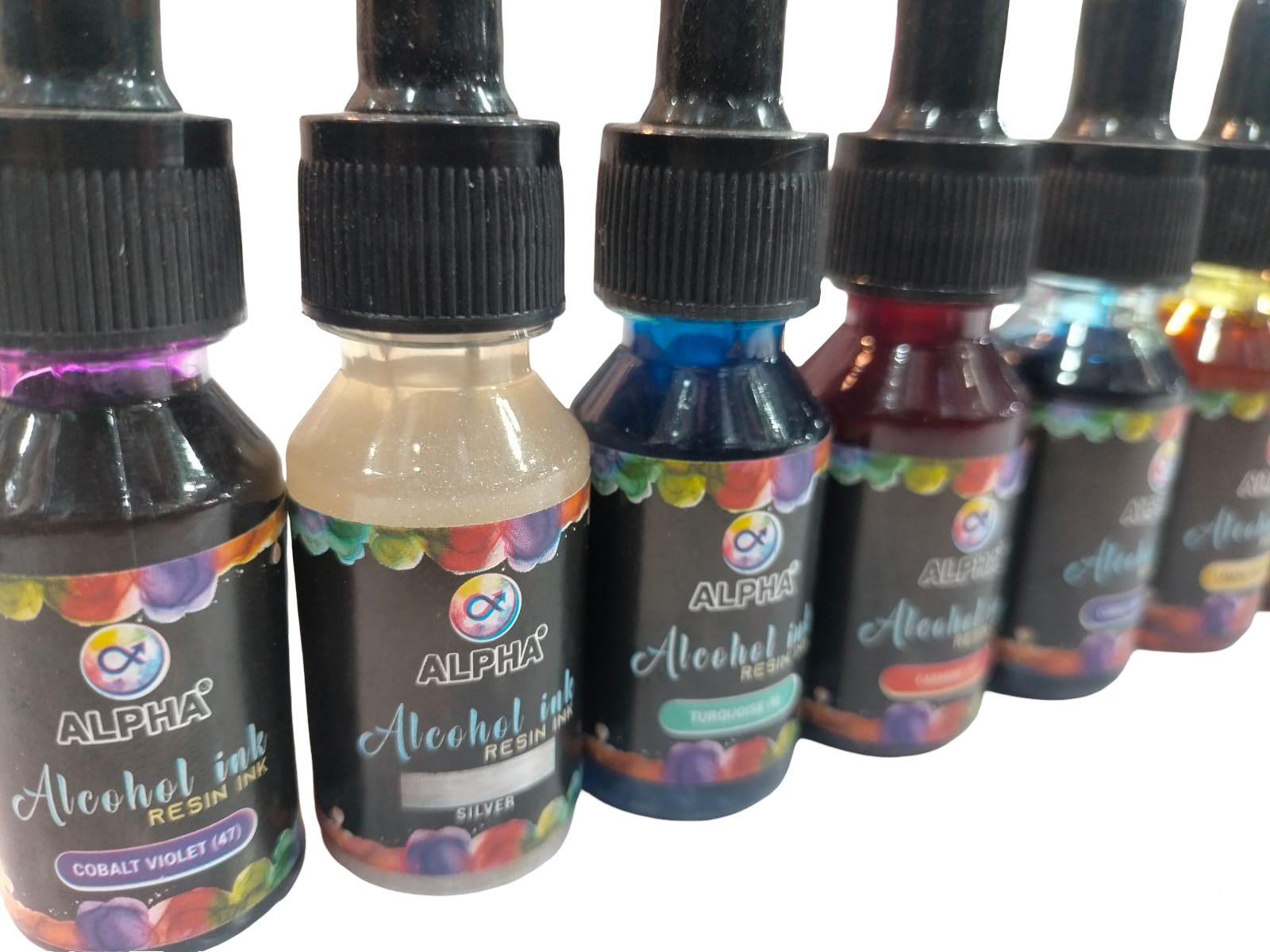 Alpha Alcohol Ink, which are concentrated, alcohol-based inks used for art projects, particularly with epoxy resin.