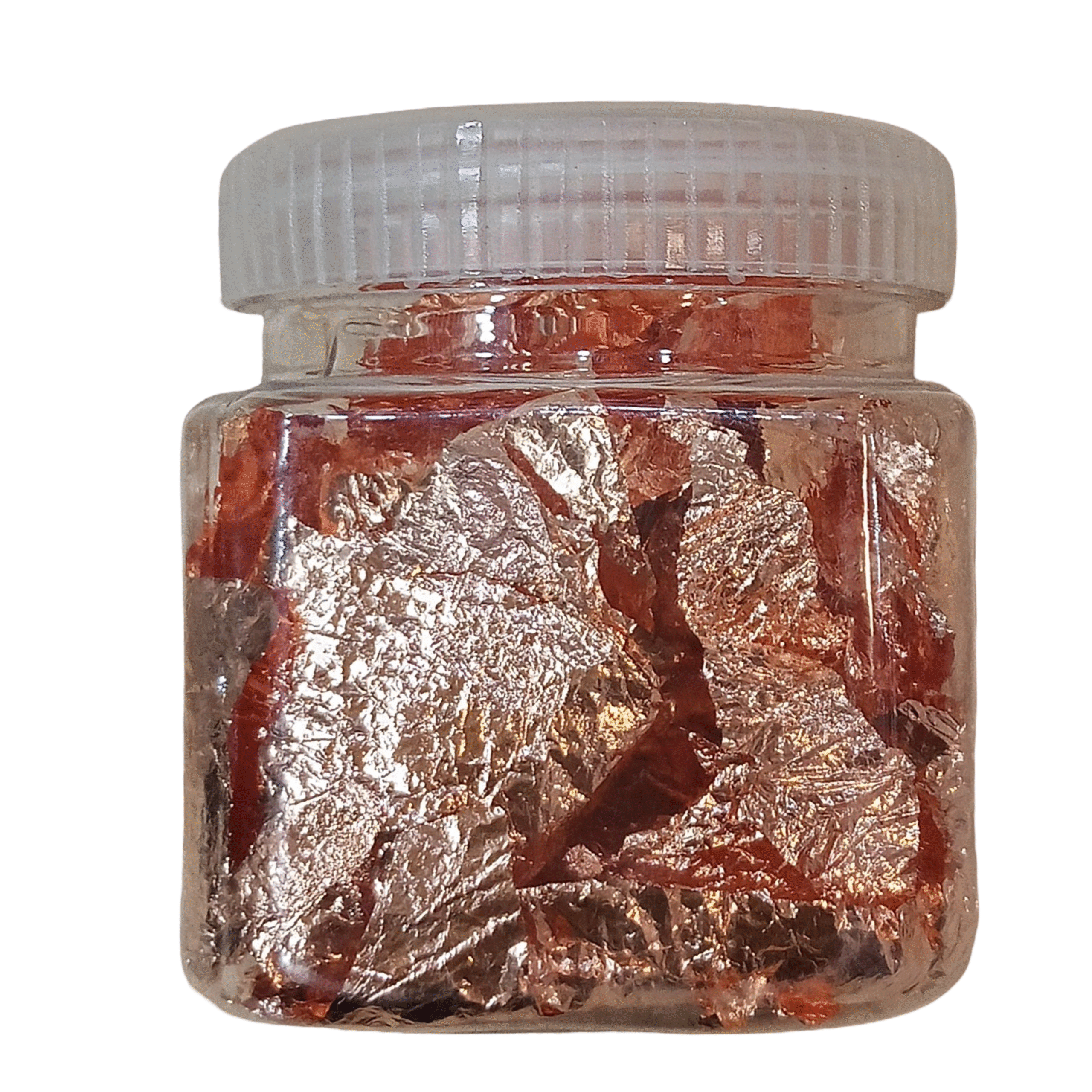 metallic leaf flakes, which are used for various crafts and artistic applications. The flakes are available in different colors, including gold, silver, and copper.