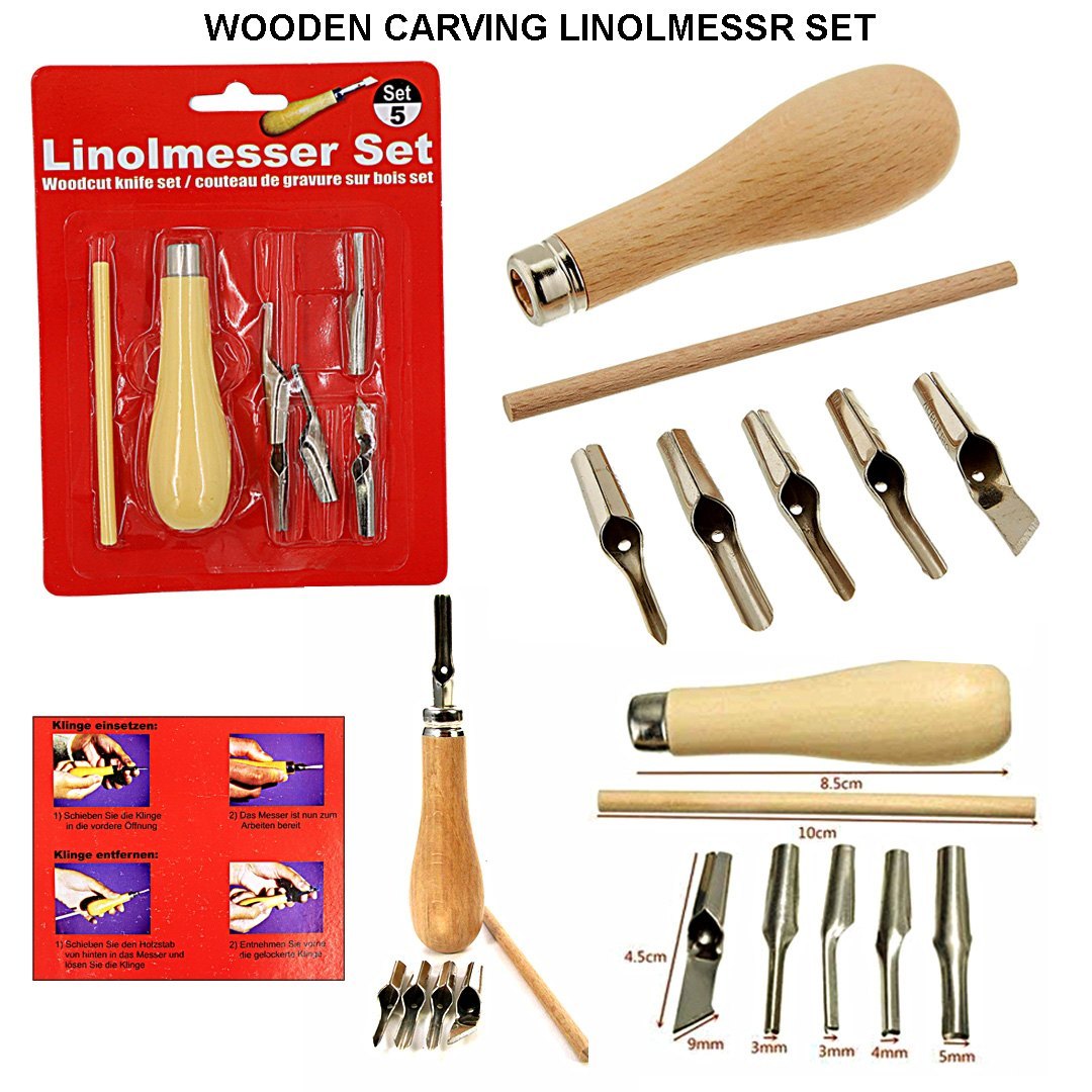 Linolmesser Set, also known as a woodcut knife set or lino cutter set. Product: Linolmesser Set / Woodcut Knife Set (5 pieces) Contents: The set includes a wooden handle and 5 different interchangeable blades suitable for linoleum carving and woodcut art. Purpose: Ideal for carving linoleum, Speedy Cut, Speedy Carve, and other hard and soft substrates, as well…