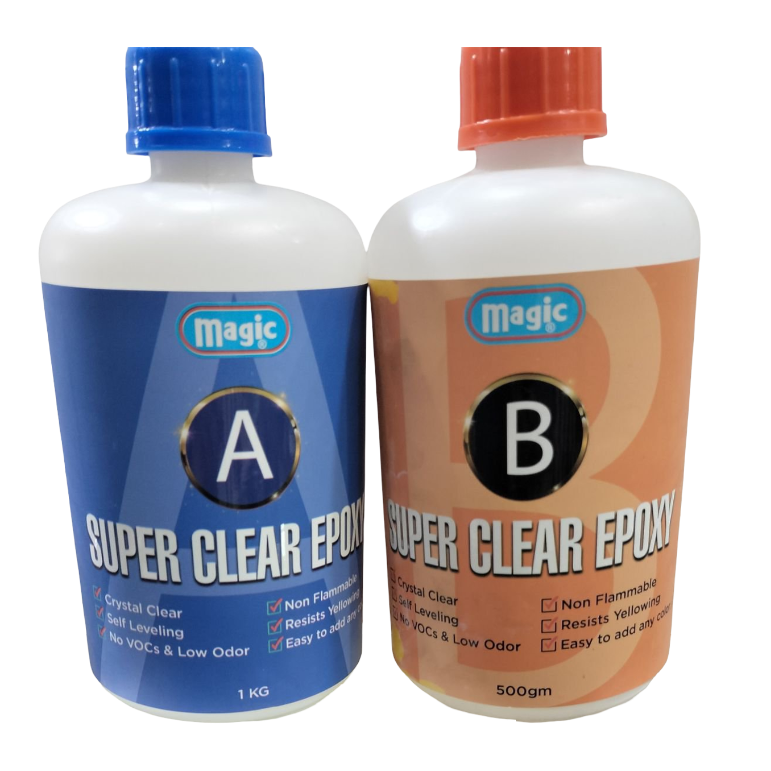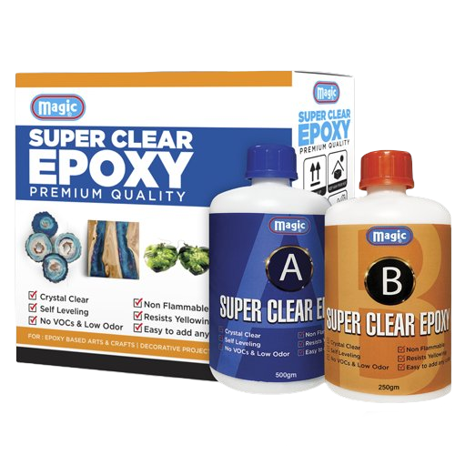 Magic Super Clear Epoxy Resin, a two-part epoxy system for crafting and DIY projects. It’s a high-quality, crystal clear, self-leveling epoxy resin system. It’s designed for use in resin art, crafting, and other creative projects, providing a super glossy finish. The epoxy is known for its excellent adhesion to various substrates and its resistance to…