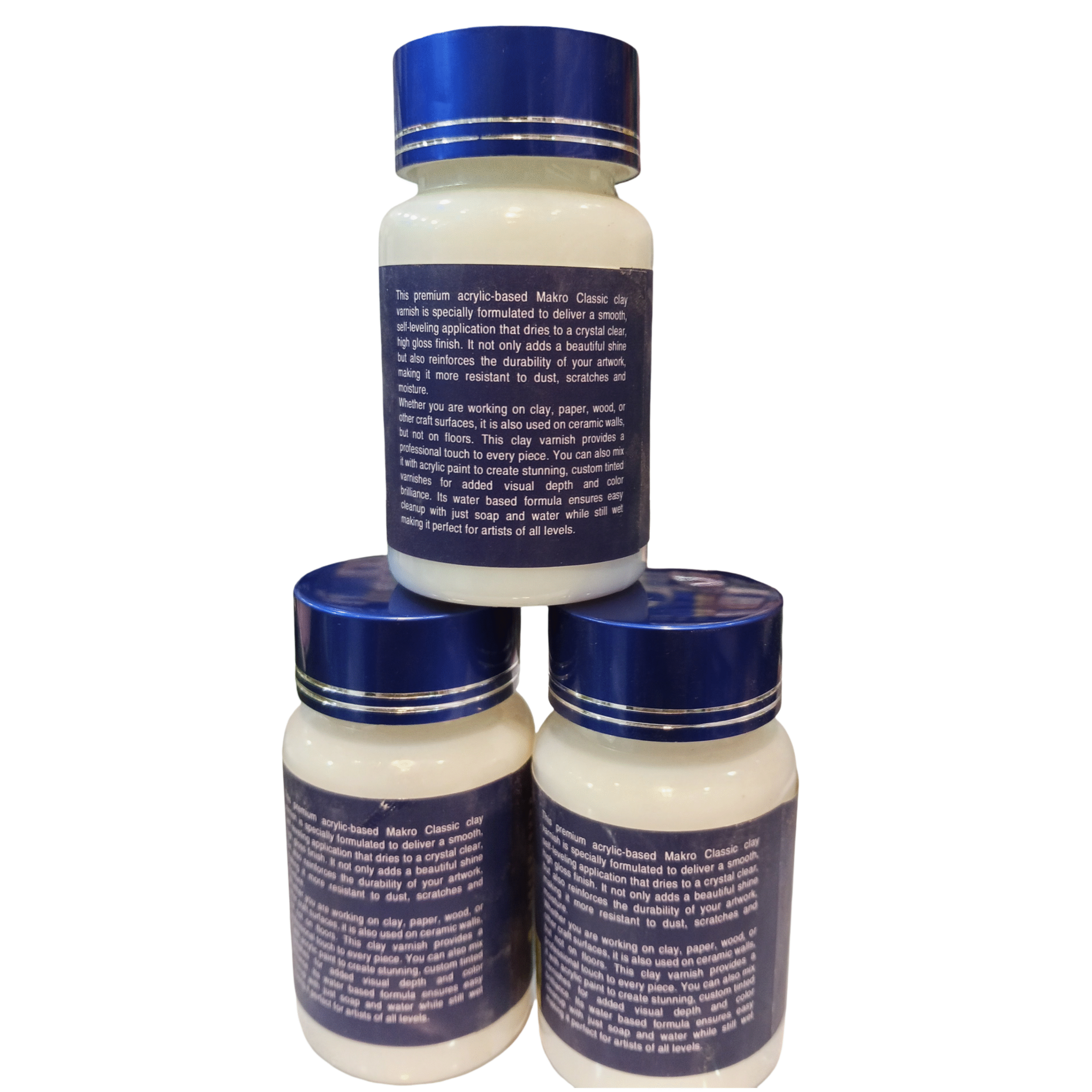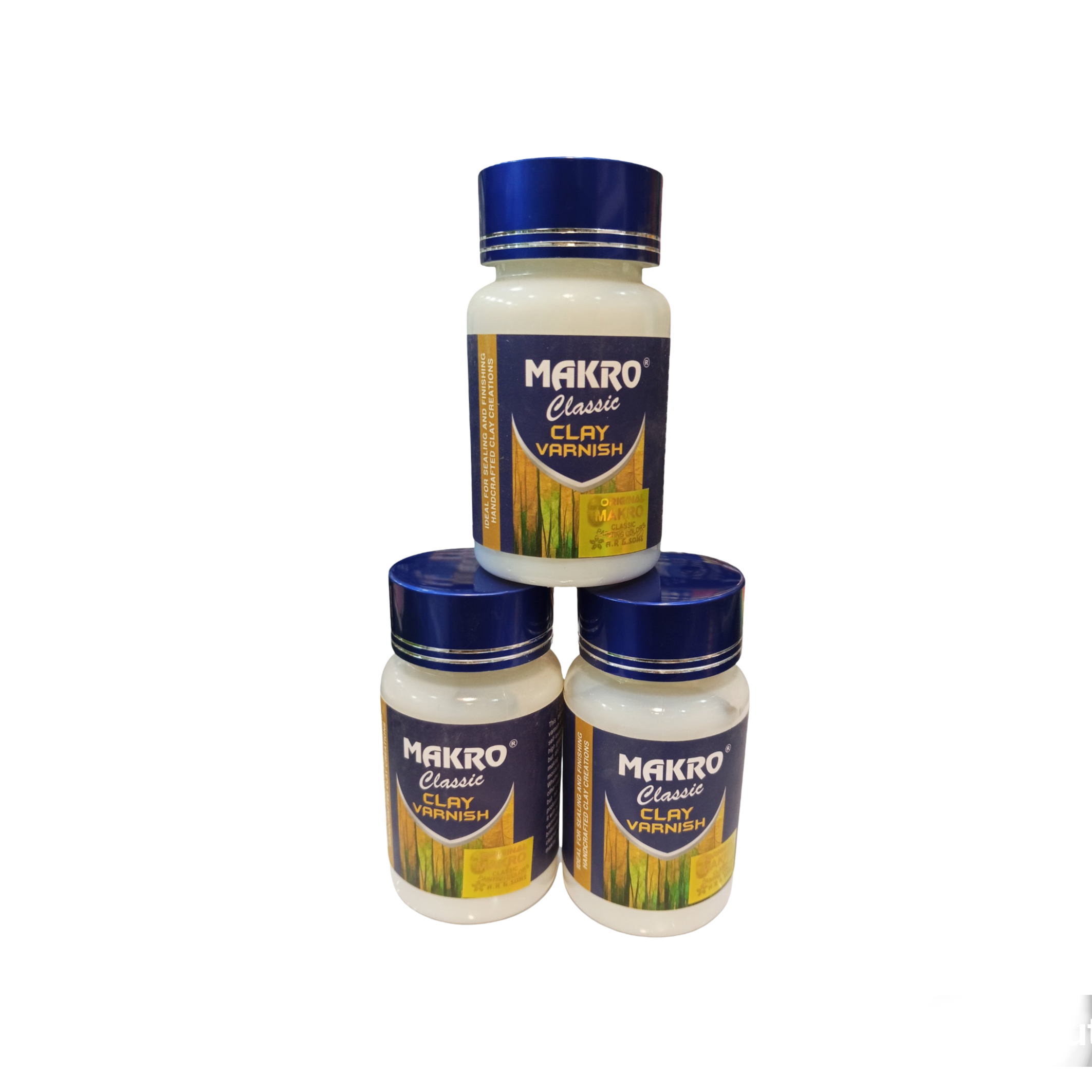 Makro Classic Clay Varnish, a product designed for sealing and finishing handcrafted clay creations.