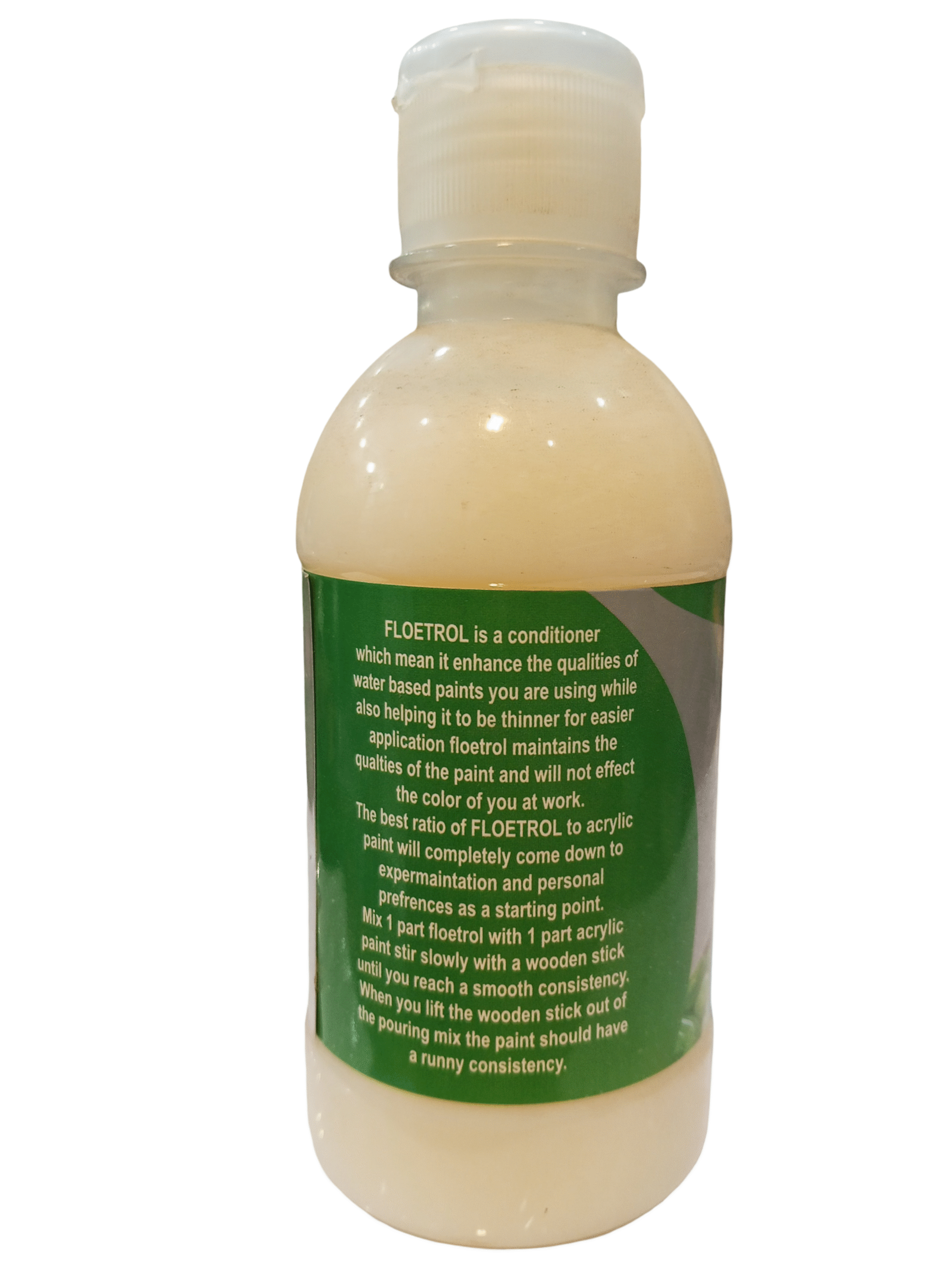 Makro Classic Floetrol, which is a paint conditioner used to enhance the qualities of water-based paints, especially for acrylic pouring art.