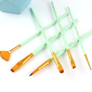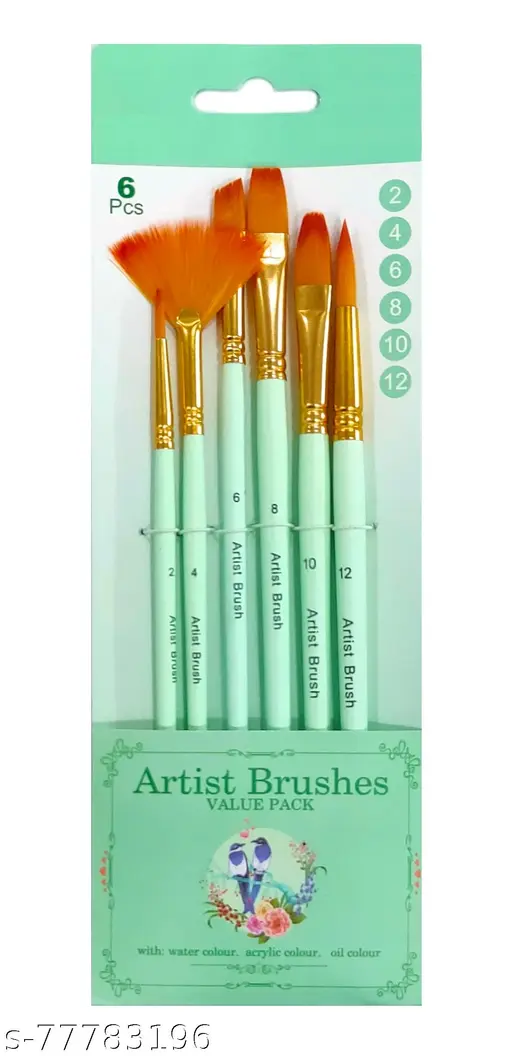 Keep Smiling Artist Brushes” set, specifically a 6-piece mix brush set (A3662). This set is designed for various art and craft applications. It contains brushes suitable for use with watercolor, acrylic, and oil paints. The set includes a variety of brush types for different techniques and effects. It is marketed as a versatile tool for…