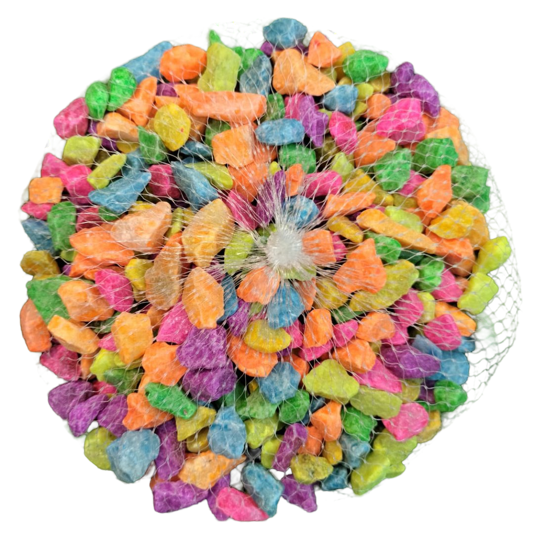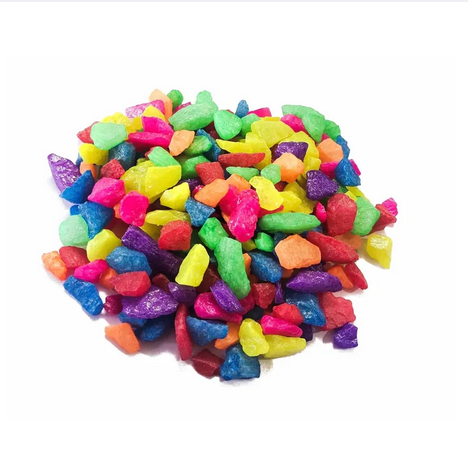 multicolored decorative pebbles, also known as aquarium gravel or polished stones. These small stones are often used for decorative purposes in various settings.