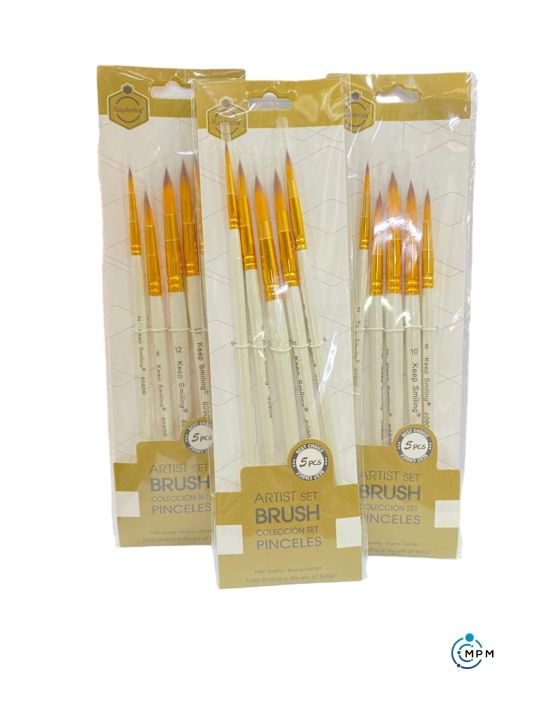 “Keep Smiling Artist Set Brush”. This specific set contains 5 round artist brushes, likely suitable for various painting mediums like watercolor, acrylic, and oil. Product: Keep Smiling Artist Set Brush (5 Pcs Round). Features: Includes 5 round brushes of various sizes, with soft, flexible bristles and ergonomic handles for comfortable use and precise strokes. Uses:…