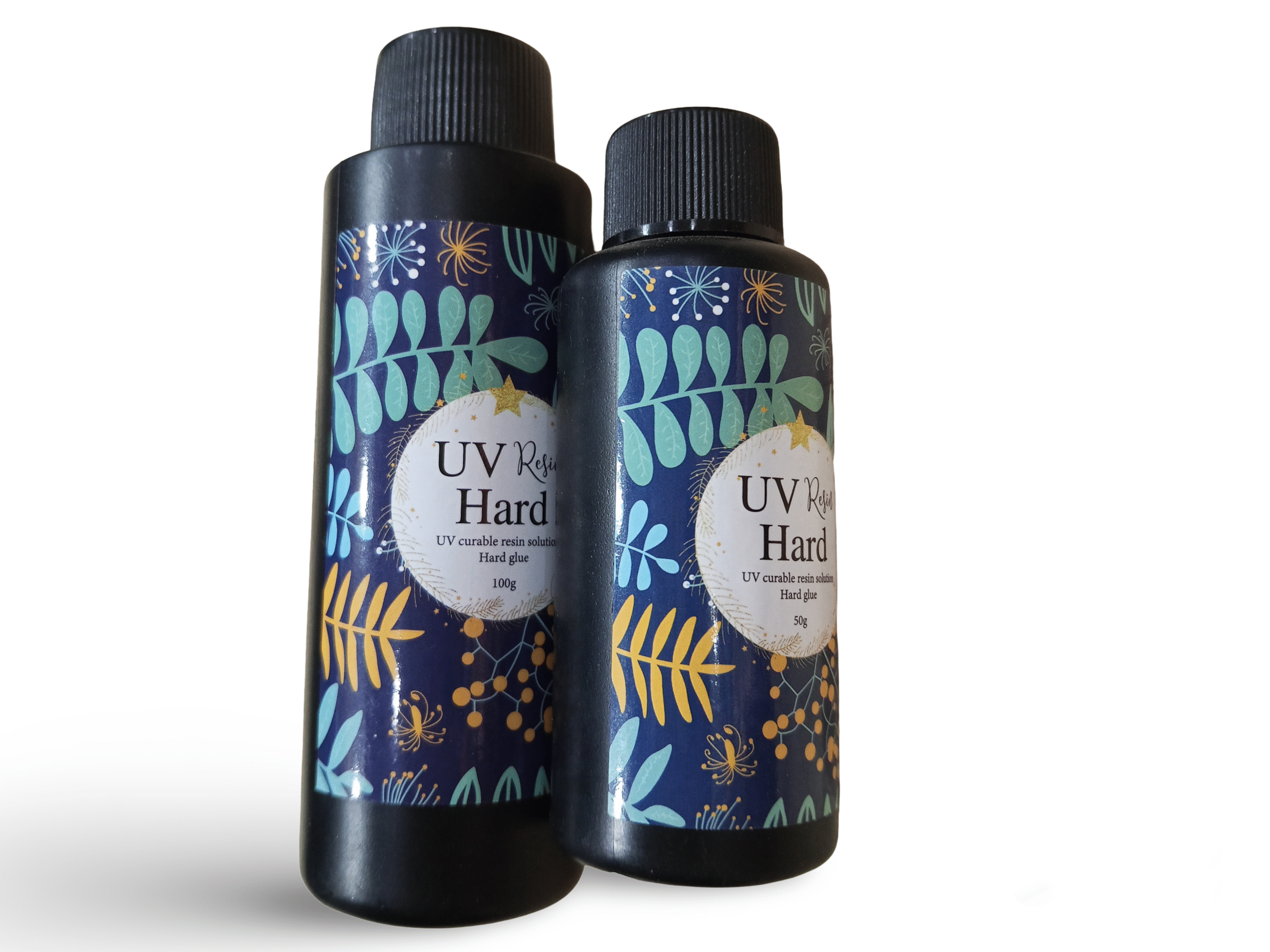 UV Resin Hard, a type of ultraviolet (UV) curable resin solution used as a hard glue. Here’s information for shopping: Product: UV Resin Hard, a crystal clear, hard-type UV epoxy resin. Sizes: Available in different quantities, with the bottles in the image showing 100g and 50g. Applications: Commonly used for jewelry making, craft decorations, casting…